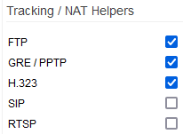 Some protocols are well-known for being poorly designed to work with NAT. Some workarounds (Helpers) have been developed to allow these protocols to operate in a NAT environment. Enabling the option will enable the corresponding helper procedure.