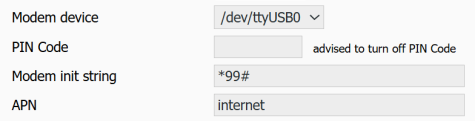 • PIN code and APN fields appear in which you must enter settings.