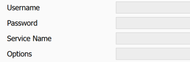 • User Name, Password, Service Name, and Options fields appear.