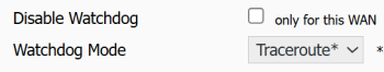 Disable Watchdog: disables the Watchdog function, only for the WAN connection in the menu.