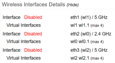 Do not blindly use this table. It's only an example. Router interface names may vary. For full chipset operation, refer to the “ethX” name reference of your interface(s). Once you have the correct names, you can check the status of your WiFi interface, as follows: