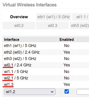 For example, in the Virtual Wireless menu on this router, you can see a 2.4GHz interface named “wl0.1”: